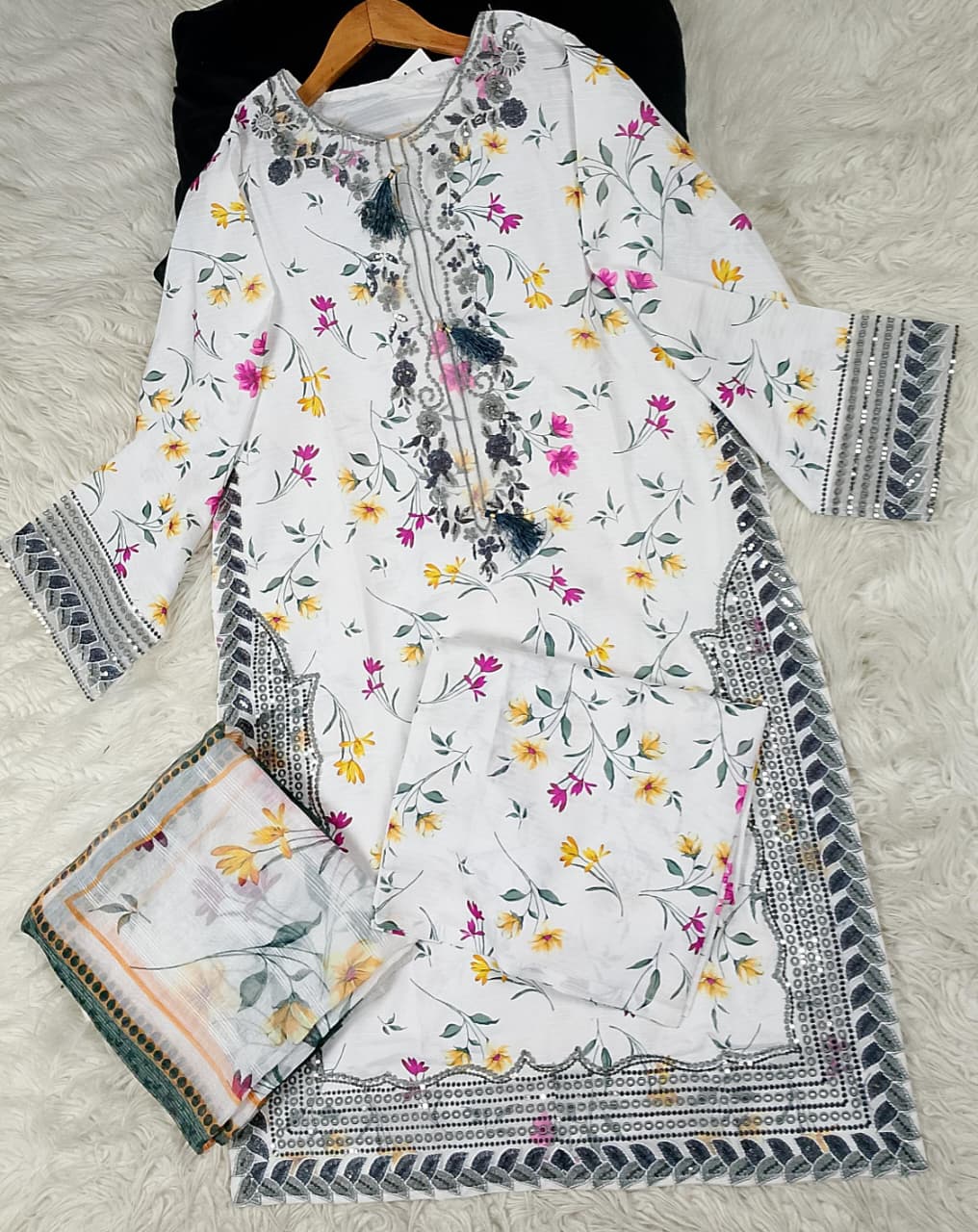 3 PIECE - EMBROIDERED DORIA COTTON SUIT