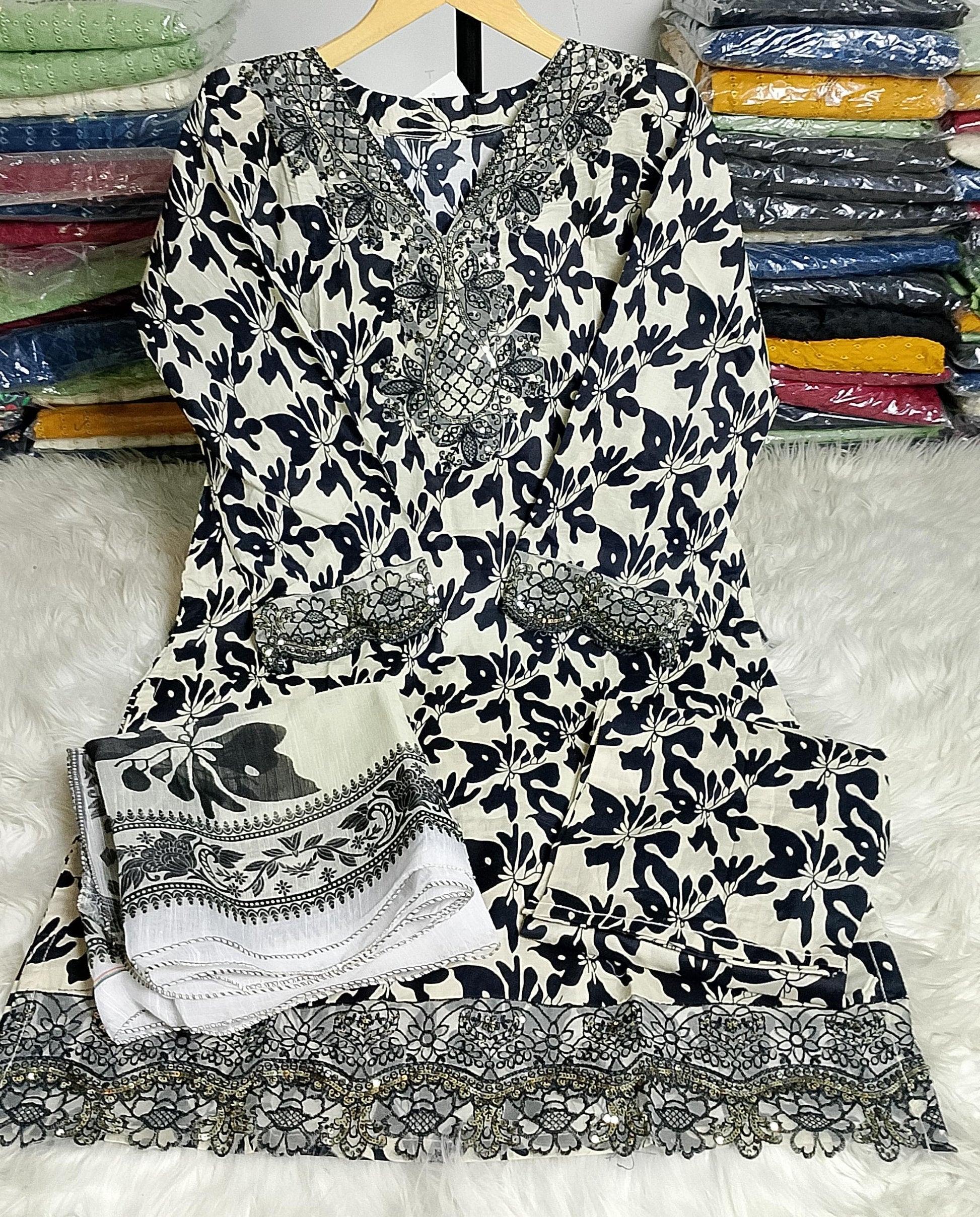 3 PIECE - EMBROIDERED / PRINTED LAWN SUIT